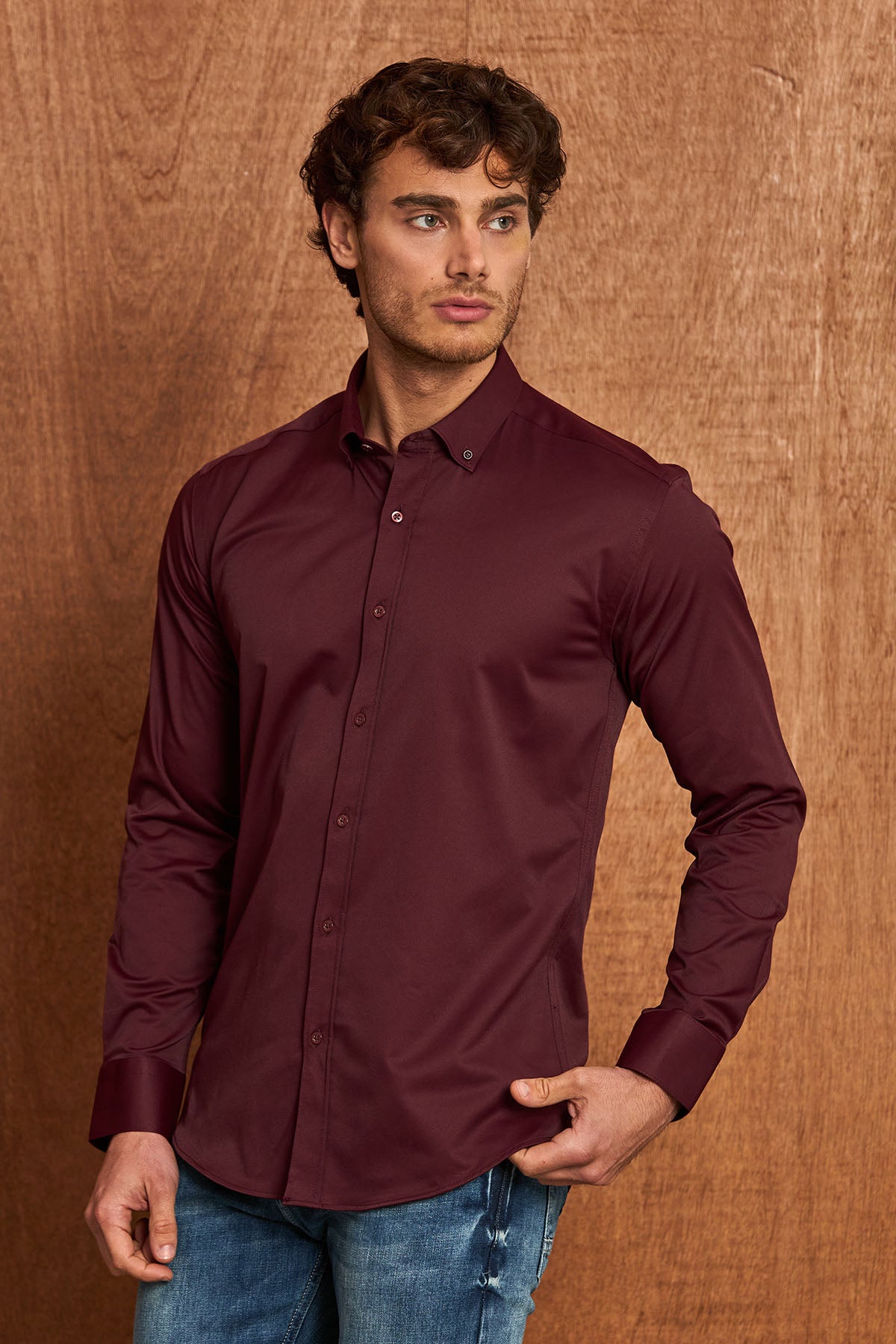 BH102 Klassisches Herrenhemd – Regular Fit, Baumwoll-Satin, Bügelleicht mit Brusttasche